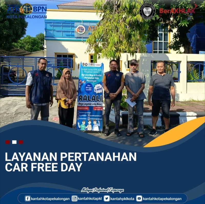Pada hari Minggu, 29 Juni 2025 Kantor Pertanahan Kota Pekalongan membuka Pelayanan Car Free Day pada pukul 07.00-10.00.