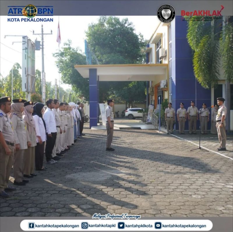 Selasa, 15 Juli 2025 kegiatan rutin mingguan Kantor Pertanahan Kota Pekalongan ialah apel pagi, apel pagi hari ini dipimpin oleh Kepala Kantor Pertanahan, bertempat di halaman depan Kantah Kota Pekalongan, diikuti oleh seluruh jajaran.