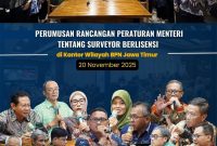 Surabaya – Telah dilaksanakan Pembahasan Rancangan Peraturan Menteri ATR/Kepala BPN tentang Surveyor Berlisensi pada (20/11) di Kantor Wilayah BPN Provinsi Jawa Timur. Kegiatan ini…