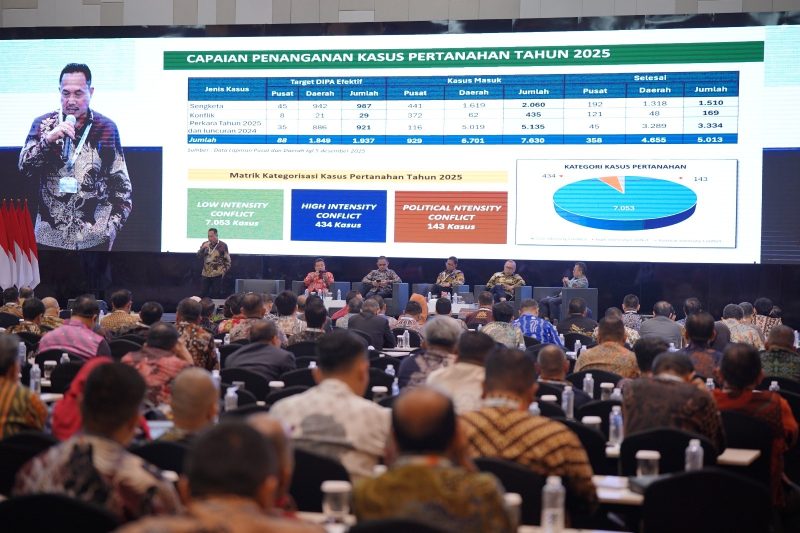 Sepanjang tahun 2025, Satgas Pencegahan dan Penyelesaian Tindak Pidana Pertanahan berhasil mencatat pencapaian signifikan. Sebanyak 90 kasus terselesaikan dari target 65 kasus, 185 tersangka ditetapkan, dan potensi kerugian negara senilai Rp23.378.726.573.570 atau lebih dari Rp23 triliun berhasil diselamatkan. “Ini angka yang luar biasa. Kita mampu menyelamatkan potensi kerugian yang nilainya lebih dari Rp23 triliun,” ungkap Dirjen PSKP Kementerian ATR/BPN.