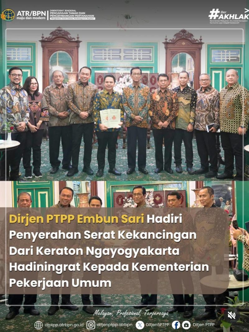 Direktorat Jenderal PTPP, Embun Sari, menyampaikan apresiasi mendalam atas sinergi ini. “Sinergi antara pemerintah dan Kasultanan menjadi kunci percepatan realisasi PSN, dengan tetap menjunjung tinggi hak serta kearifan lokal masyarakat.” ungkapnya.