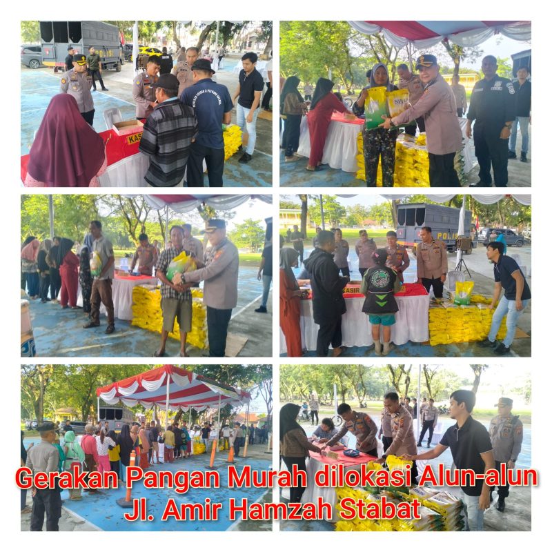 Polres Langkat bersama Polsek jajaran menggelar Gerakan Pangan Murah Penjualan Beras Stabilisasi Pasokan dan Harga Pangan (SPHP) pada Rabu, 13 Agustus 2025, mulai pukul 08.00 WIB hingga selesai. Kegiatan ini berlangsung serentak di dua lokasi utama, yaitu Lapangan Bola Voli Alun-Alun T. Amir Hamzah Stabat dan Mako Polres Langkat, serta di 12 titik lain yang tersebar di Polsek jajaran.