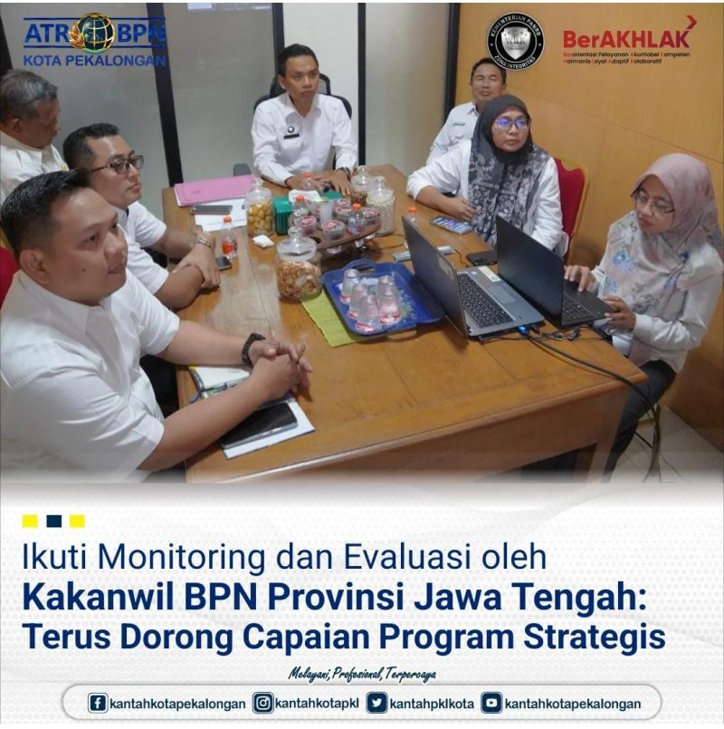 Rabu, 20 Agustus 2025 Kepala Kantor Pertanahan Kota Pekalongan bersama dengah seluruh Pejabat Pengawas menghadiri Undangan Monitoring dan Evaluasi (Monev) yang diselenggarakan oleh Kanwil BPN Provinsi Jawa Tengah.