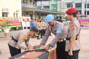 Dalam upacara tersebut, AKBP Angga F. Herlambang, S.I.K., S.H., memimpin jalannya sertijab dengan khidmat. Pejabat lama dan baru yang melaksanakan sertijab antara lain, Kabag SDM dari Kompol Jasman, S.E. kepada AKP Edwi Sunardi, S.AP., S.H, Kasat Reskrim dari AKP Kris Tofel, S.Tr.k., S.I.K. kepada AKP Agung Rama Setiawan, S.I.K., M.S.I, Kasat Pamobvit dari AKP M. Sahudi, S.H., M.H. kepada AKP Abdul Wahab, S.H.