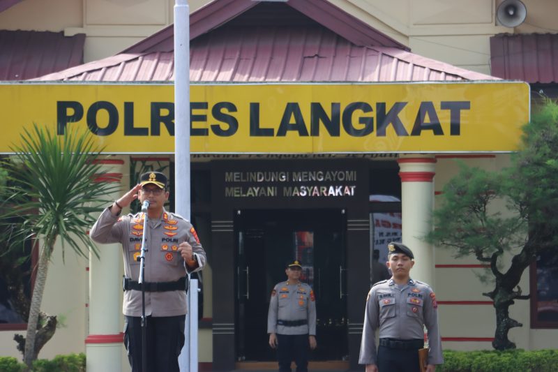 Upacara tersebut dihadiri Wakapolres Langkat Kompol Husnil Mubarak Daulay, S.H., S.I.K., M.I.K., para pejabat utama, Kapolsek jajaran, perwira, personel Polri, ASN serta PHL Polres Langkat.