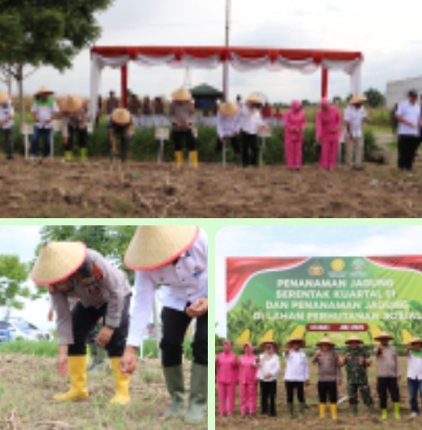 Kapolres Langkat, AKBP David Triyo Prasojo, SH, SIK, MSi., diwakili Wakapolres Kompol Husnil Mubarok Daulay, SH.SIK.MIK, melaksanakan penanaman jagung serentak kuartal III di lahan Bhayangkara kelurahan Kwala Bingai Kecamatan Stabat Kabupaten Langkat, Rabu (09/07/2025).