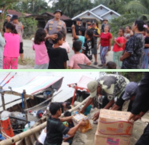 Kapolres Langkat AKBP David Triyo Prasojo, S.H., S.I.K., M.Si bersama para Pejabat Utama Polres Langkat melaksanakan kegiatan penyaluran bantuan sosial kepada masyarakat yang terdampak banjir di Dusun 10 Paluh Gusta, Desa Pematang Cengal, Kecamatan Tanjung Pura, Sabtu (06/12/2025).