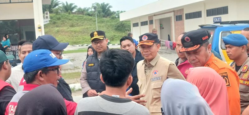 Kapolres Langkat AKBP David Triyo Prasojo, S.H., S.I.K., M.Si. bersama Pejabat Utama Polres Langkat dan unsur Forkopimda Kabupaten Langkat meninjau sekaligus menyalurkan bantuan sosial kepada warga terdampak banjir yang mengungsi di Rest Area Stabat–Tanjung Pura KM 42, Jumat (28/11/2025) sore.