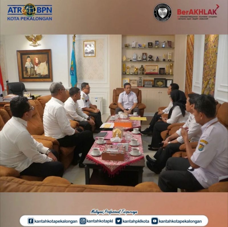 Rabu, 18 Juni 2025 Kepala Kantor Pertanahan Kota Pekalongan bersama dengan seluruh pejabat pengawas sore ini bersilaturahmi ke Kantor Wali Kota Pekalongan serta bertemu langsung dengan Wali Kota, Achmad Afzan Arslan Djunaid.