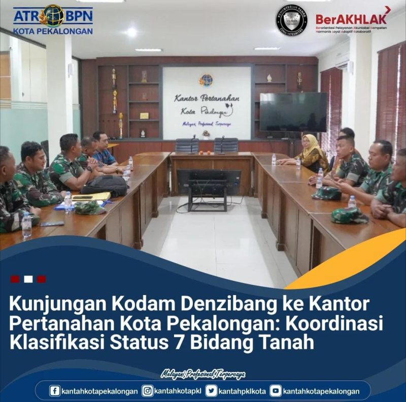 Kantor Pertanahan Kota Pekalongan menerima kunjungan dari Komando Daerah Militer (Kodam) Denzibang 1 Purwokerto dan Subdenzibang 031 Pekalongan pada Kamis, 14 Agustus 2025.