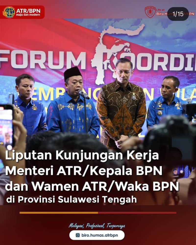 Halo #SobatATRBPN, Tim Biro Humas dan Protokol bertugas pada kegiatan kunjungan kerja Menteri ATR/Kepala BPN dan Wakil Menteri ATR/Wakil Kepala BPN di Provinsi Sulawesi Tengah pad Rabu, (09/07/2025) dan Kamis (10/07/2025)