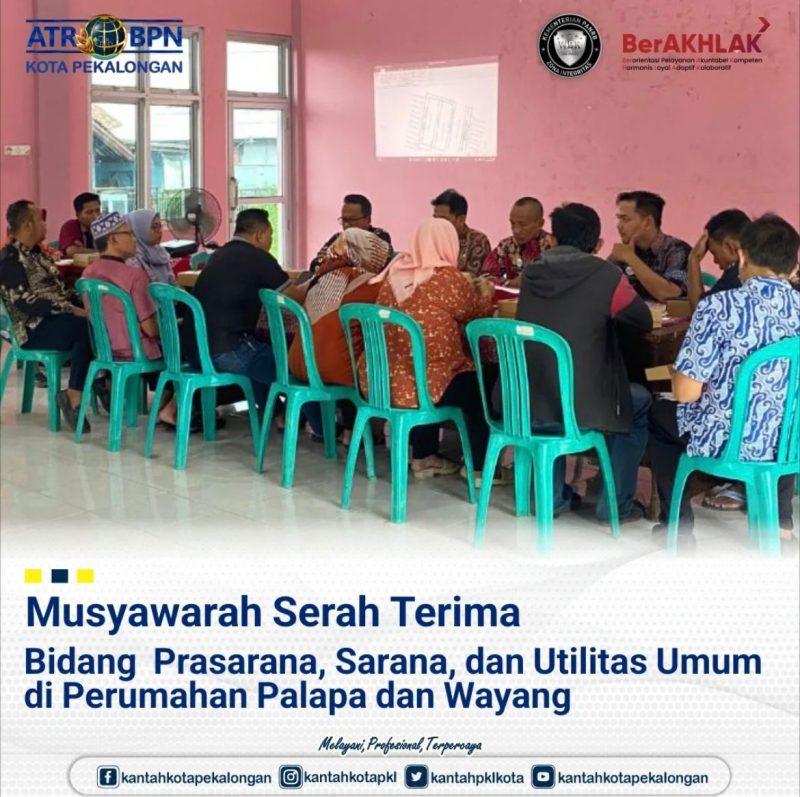 Kamis, 3 Juli 2025 Kepala Seksi Survei dan Pemetaan Kantor Pertanahan Kota Pekalongan menghadiri kegiatan musyawarah serah terima bidang Prasarana, Sarana dan Utilitas Umum di perumahan Palapa dan Wayang Kelurahan Kandang Panjang, Kecamatan Pekalongan Utara.