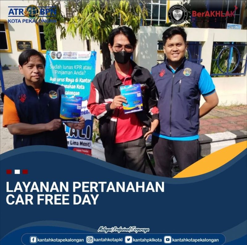 Pada hari Minggu, 20 Juli 2025 Kantor Pertanahan Kota Pekalongan membuka Pelayanan Car Free Day pada pukul 07.00-10.00.