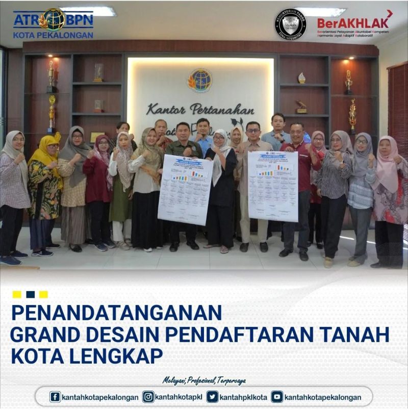 Jum’at, 1 Agustus 2025 Kantor Pertanahan Kota Pekalongan melaksanakan penandatanganan Grand Desain Pendaftaran Tanah Kota Lengkap, ini bukan sekadar seremoni, melainkan wujud nyata komitmen kami untuk memberikan kepastian hukum dan perlindungan hak atas tanah bagi masyarakat Kota Pekalongan.