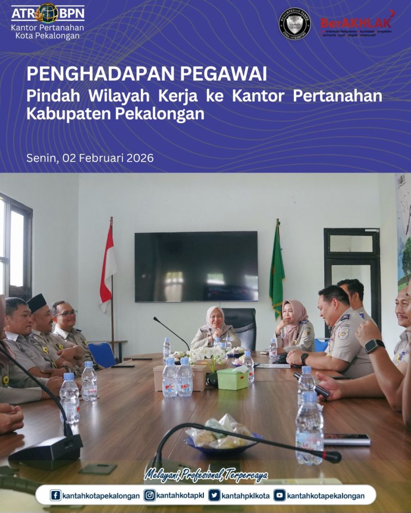 Senin, 2 Februari 2026 Kepala Subbagian Tata Usaha, Bapak Dwi Suprastyo, memimpin prosesi penghadapan dua orang pegawai yang berpindah tugas ke Kantor Pertanahan Kabupaten Pekalongan.