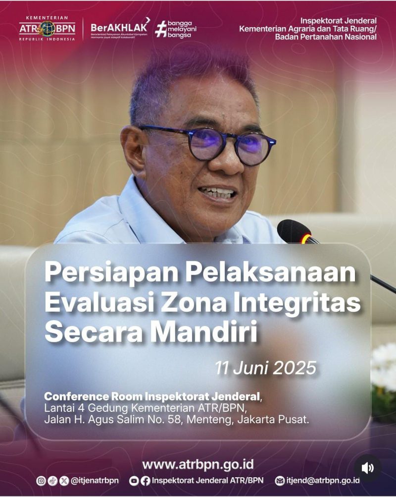 Acara ini berlangsung pada hari Rabu, 11 Juni 2025 pukul 13.00 WIB di Conference Room Inspektorat Jenderal, Lantai 4 Gedung Kementerian ATR/BPN, Jakarta Pusat.