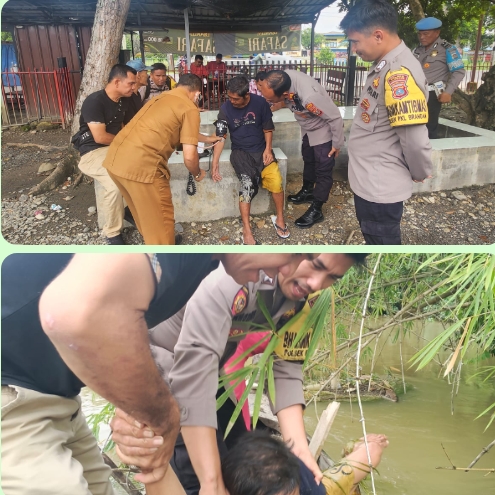 Respons cepat Polsek Pangkalan Brandan Polres Langkat berhasil menyelamatkan nyawa seorang warga yang hanyut di Sungai Pelawi, Kecamatan Babalan, Kabupaten Langkat, Senin (07/09/2025).