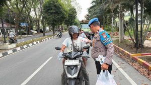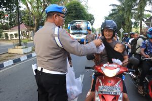 Selain membagikan takjil, personel Polres Langkat juga memberikan imbauan kepada para pengendara agar tetap tertib berlalu lintas, mematuhi aturan di jalan raya, serta mengutamakan keselamatan selama berkendara.