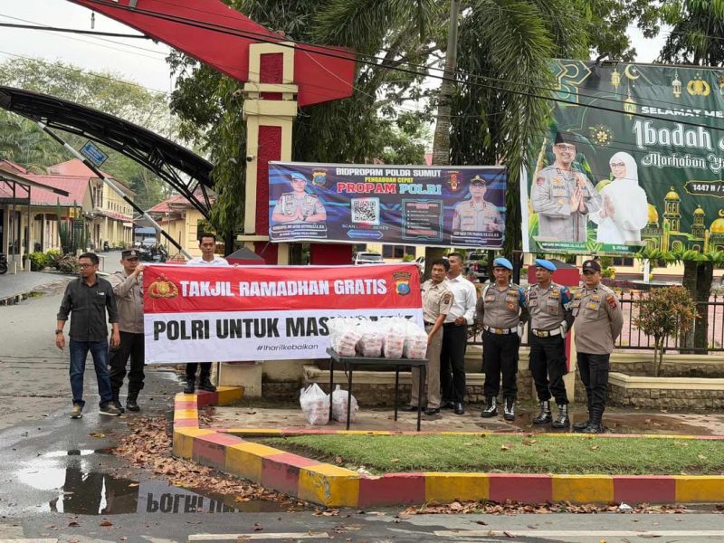 Memasuki hari ke-20 bulan suci Ramadhan 1447 H / 2026 M, Polres Langkat kembali melaksanakan kegiatan bakti sosial dengan membagikan takjil kepada masyarakat. Kegiatan tersebut berlangsung pada Selasa (10/3/2026) sekitar pukul 17.00 WIB di depan Mako Polres Langkat, Jalan Proklamasi, Kelurahan Kwala Bingai, Kecamatan Stabat, Kabupaten Langkat.