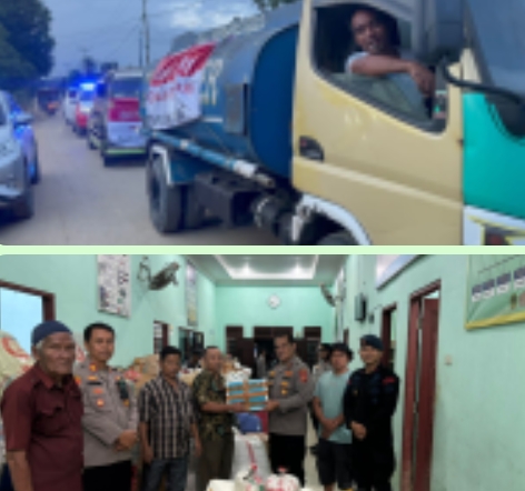 Adapun bantuan yang disalurkan meliputi 1 truk sembako dan 2 truk tangki air bersih, yang didistribusikan melalui Kantor Desa serta langsung ke pemukiman warga yang masih terdampak banjir.
