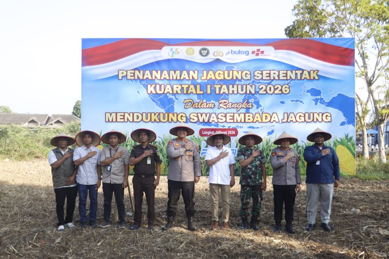 Polres Langkat mengikuti kegiatan Tanam Raya Jagung Serentak Kuartal I yang dipimpin oleh Kapolri Listyo Sigit Prabowo melalui zoom meeting, yang dilanjutkan dengan penanaman jagung di lahan binaan Polres Langkat di Kelurahan Kwala Bingai, Kecamatan Stabat, Kabupaten Langkat, Sabtu (07/03/2026).