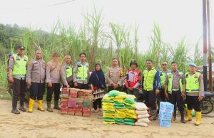 Bantuan berupa logistik bahan pangan berupa beras sebanyak 60 karung serberat 300 kilogram beras dan kebutuhan pokok lainnya seperti mie instan, minyak goreng dipikul langsung oleh personel menuju permukiman warga terdampak.