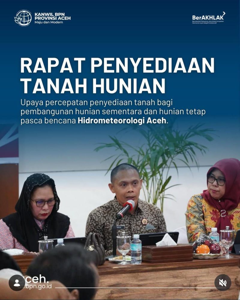 Percepatan penyediaan tanah tersebut diharapkan dapat mendukung pemulihan pascabencana secara berkelanjutan serta menghadirkan hunian yang layak, aman, dan memberikan kepastian tempat tinggal bagi masyrakat Aceh yang terdampak.