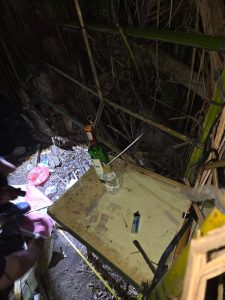 Dari lokasi, petugas menemukan sejumlah barang bukti berupa satu buah bong, plastik bening kosong, kaca pirek bekas pakai sabu, mancis, serta bangku kayu yang berada di dalam pondok tersebut.