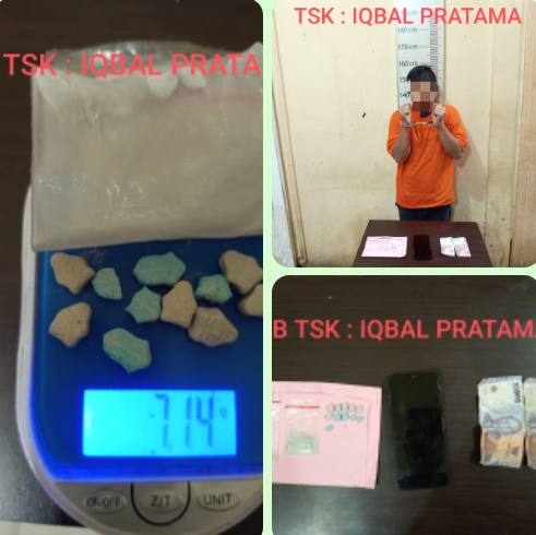 Dalam penangkapan tersebut, petugas berhasil mengamankan barang bukti berupa 2 (dua) bungkus plastik klip bening yang didalamnya diduga terdapat narkotika jenis Pil Ekstasi sebanyak 10 (sepuluh) butir dan serbuk ekstasi yang terdapat didalam plastik klip bening dengan brutto 7,14 (tujuh koma empat belas)Gram, dan 1 (satu) unit hand phone android merk vivo warna hitam.