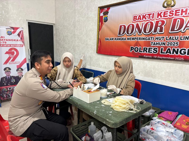 Satuan Lalu Lintas (Satlantas) Polres Langkat menggelar kegiatan donor darah di Kantor Sat lantas Polres Langkat dalam rangka memperingati Hari Ulang Tahun Lalu Lintas (HUT Lantas) ke-70,, Kamis (18/9/2025).