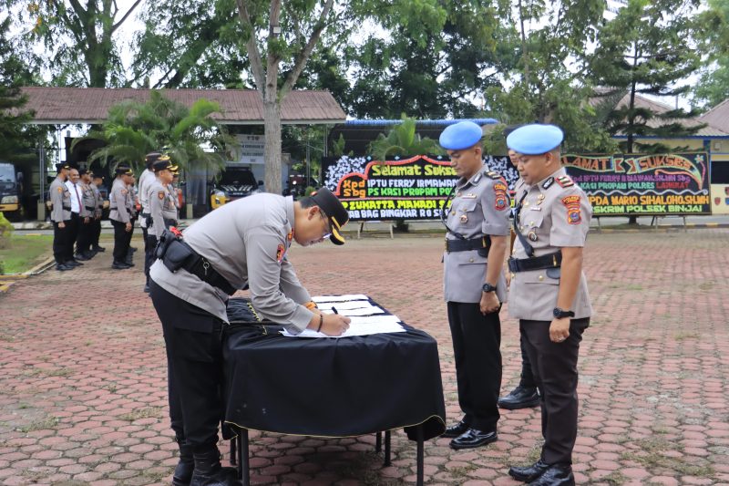 Polres Langkat melaksanakan kegiatan serah terima jabatan (sertijab) sejumlah pejabat strategis yang dipimpin langsung oleh Kapolres Langkat AKBP David Triyo Prasojo, SH, SIK, M.Si, di Lapangan Jananuraga Polres Langkat, yang dilaksanakan pada Jumat, 17 April 2026.