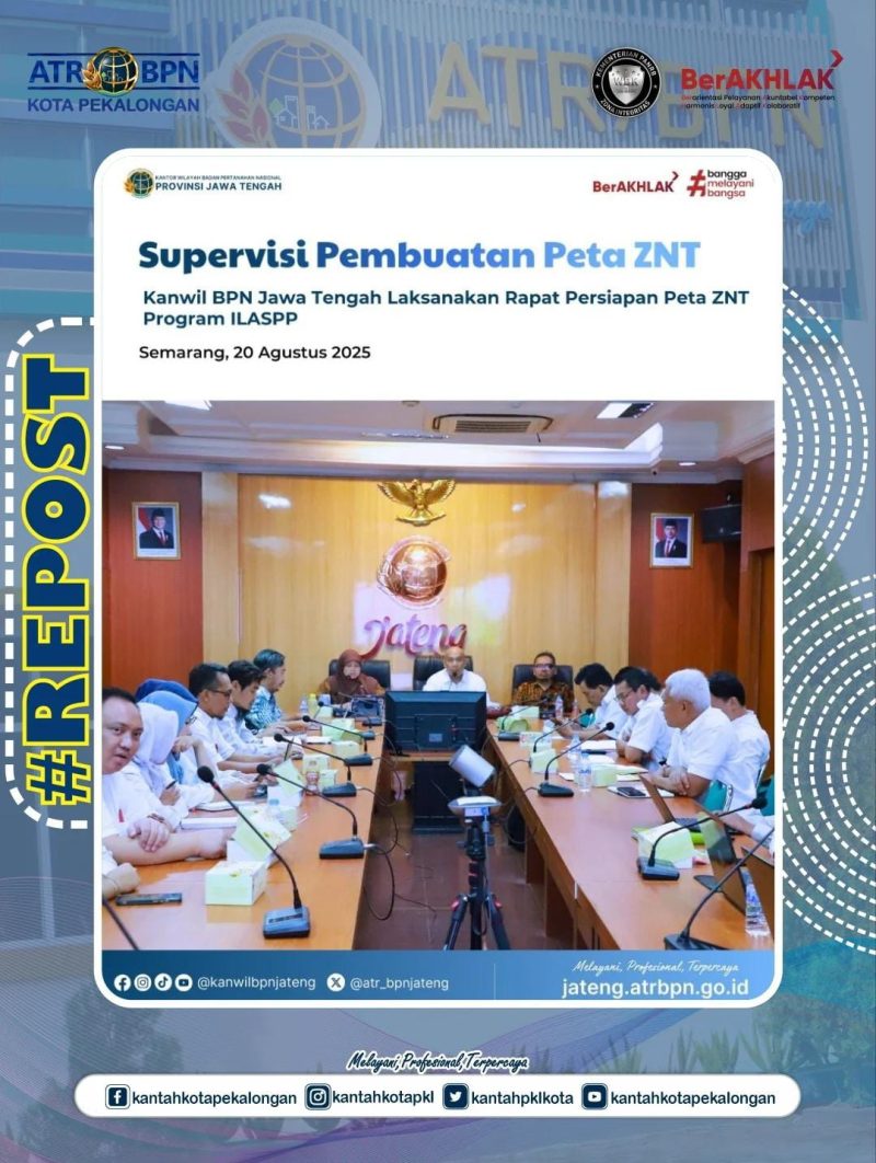 Pembuatan Peta ZNT ini menjadi bagian dari Program Integrated Land Administration and Spatial Planning Project (ILASPP) TA. 2025 yang bertujuan meningkatkan transparansi, kepastian hukum, serta mendukung perencanaan pembangunan wilayah.