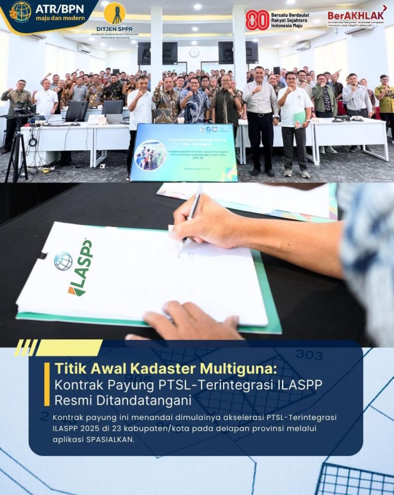 Jakarta – Pelaksanaan Integrated Land Administration and Spatial Planning Project (ILASPP) mendorong terwujudnya Kadaster Multiguna Terintegrasi, yaitu sistem yang memanfaatkan data pertanahan sebagai basis informasi lintas sektor untuk pembangunan, investasi, dan keberlanjutan lingkungan. Sebagai langkah awal, dilaksanakan Pendaftaran Tanah Sistematis Lengkap (PTSL) Terintegrasi yang menjadi pondasi pengumpulan data menuju kadaster multiguna.