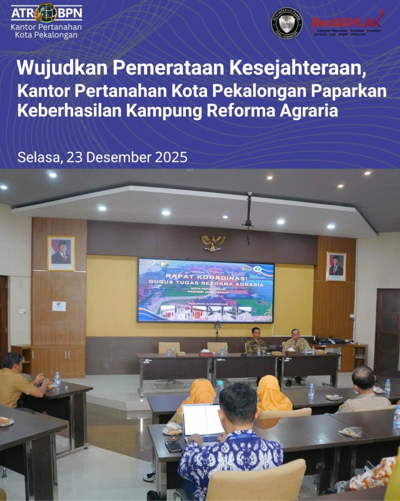 Selasa (23/12/2025), langkah nyata penataan aset dan akses di Kota Pekalongan terus diperkuat. Kepala Kantor Pertanahan Kota Pekalongan, Bapak Joko Wiyono, hadir sebagai narasumber dalam acara Rapat Koordinasi Gugus Tugas Reforma Agraria (GTRA) yang diselenggarakan oleh Sekretariat Daerah Kota Pekalongan.