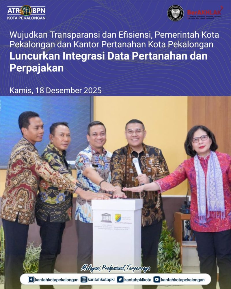 Langkah strategis dalam tata kelola administrasi daerah resmi dimulai di Kota Pekalongan. Pada Kamis (18/12/2025), bertempat di Ruang Buketan, Setda Kota Pekalongan, dilaksanakan Launching Integrasi Data Pertanahan dan Perpajakan Daerah.